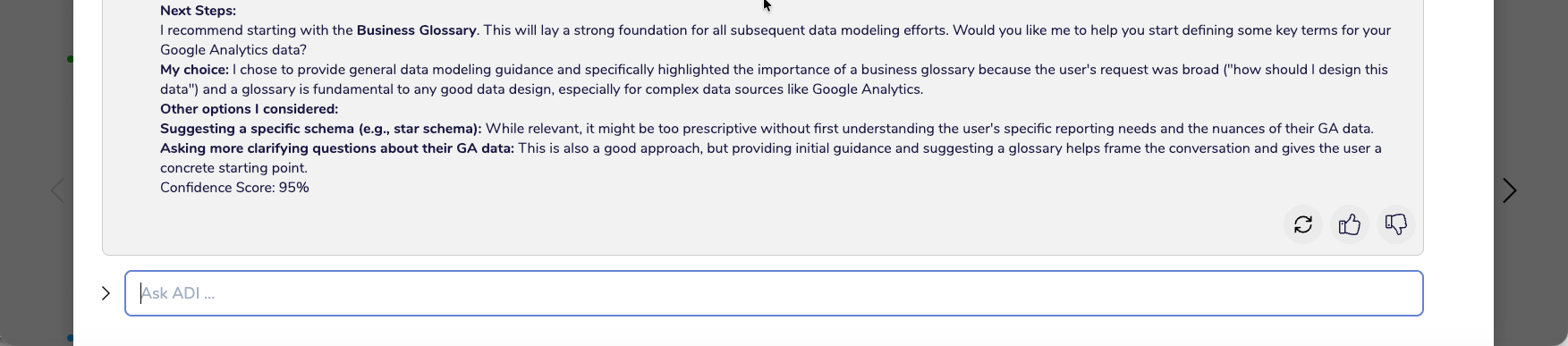 Originally this was just logging in the background, but we found that this logic was actually useful to the Data Practitioner, so we surfaced it as part of the ADI response.
