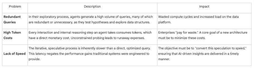 To effectively harness the business value of Large Language Models (LLMs) and AI agents, enterprises must fundamentally redesign their data systems. The current paradigm, built for direct human interaction via structured queries, is ill-suited for the speculative and exploratory nature of AI agents, leading to significant inefficiency, waste, and prohibitive costs. Agents do not simply query data; they “probe” and investigate, a process that generates redundant queries and consumes vast resources if left unmanaged.